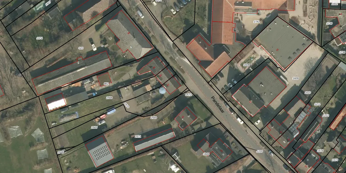 Het perceel waarop Pandelaar 42 staat heeft een oppervlakte van 535 m². Dit is een groot perceel. De perceeloppervlakte wordt geregistreerd door het Kadaster. Gedetailleerde informatie over de maten van dit perceel kunt u vinden in het rapport Kadastrale kaart met maatvoering van Pandelaar 42.