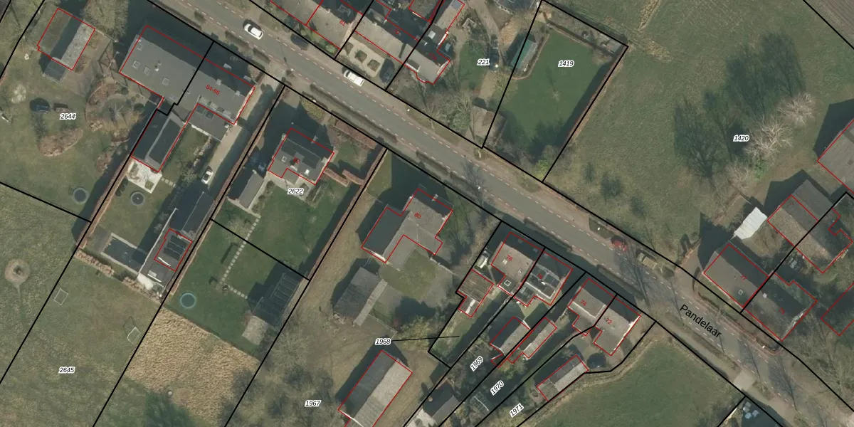 Het perceel waarop Pandelaar 80 staat heeft een oppervlakte van 3240 m². Dit is een zeer groot perceel. De perceeloppervlakte wordt geregistreerd door het Kadaster. Gedetailleerde informatie over de maten van dit perceel kunt u vinden in het rapport Kadastrale kaart met maatvoering van Pandelaar 80.