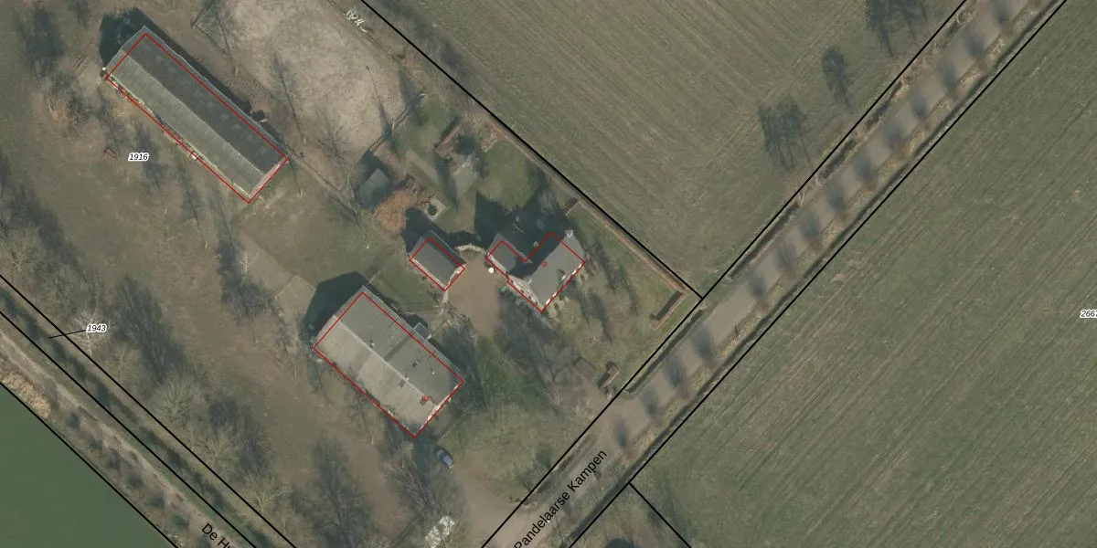 Pandelaarse Kampen 9 is gelegen op kadastraal perceel GMT00H1916. Deze kadastrale aanduiding is uniek en wordt gebruikt door het Kadaster om eigendomsrechten en andere zakelijke rechten vast te leggen. Het perceel maakt onderdeel uit van de kadastrale gemeente Gemert.