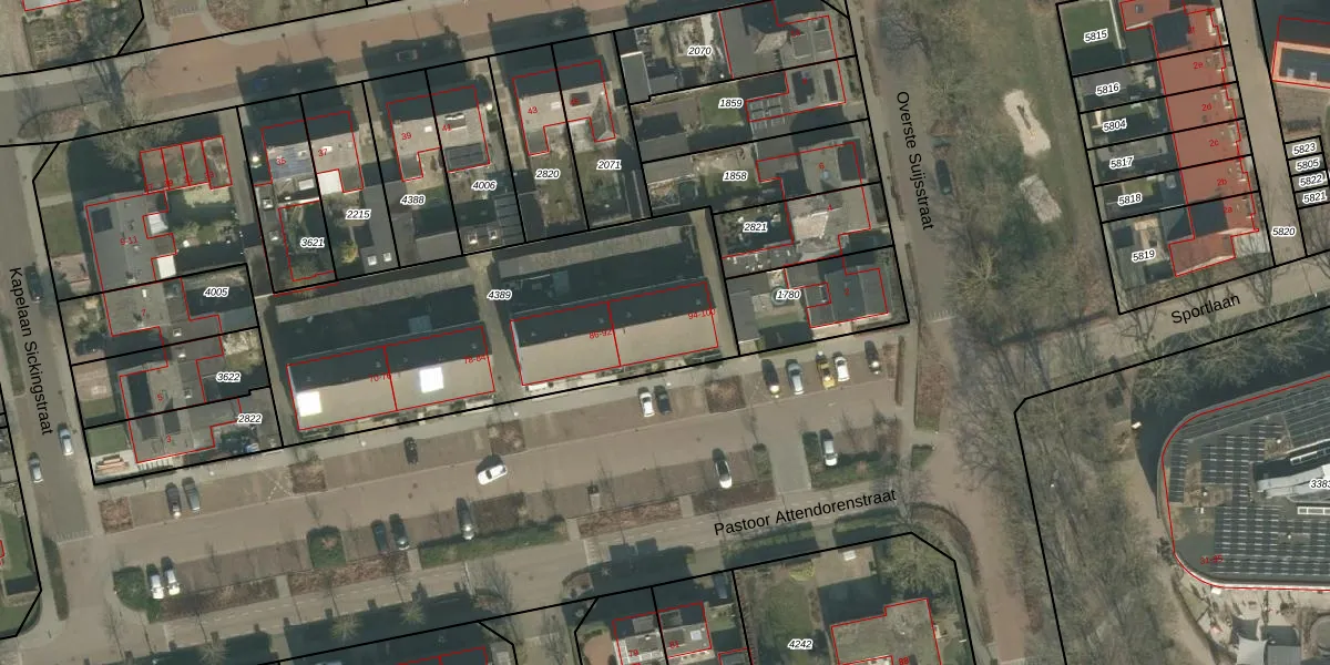 Het perceel waarop Pastoor Attendorenstraat 100 staat heeft een oppervlakte van 2361 m². Dit is een zeer groot perceel. De perceeloppervlakte wordt geregistreerd door het Kadaster. Gedetailleerde informatie over de maten van dit perceel kunt u vinden in het rapport Kadastrale kaart met maatvoering van Pastoor Attendorenstraat 100.