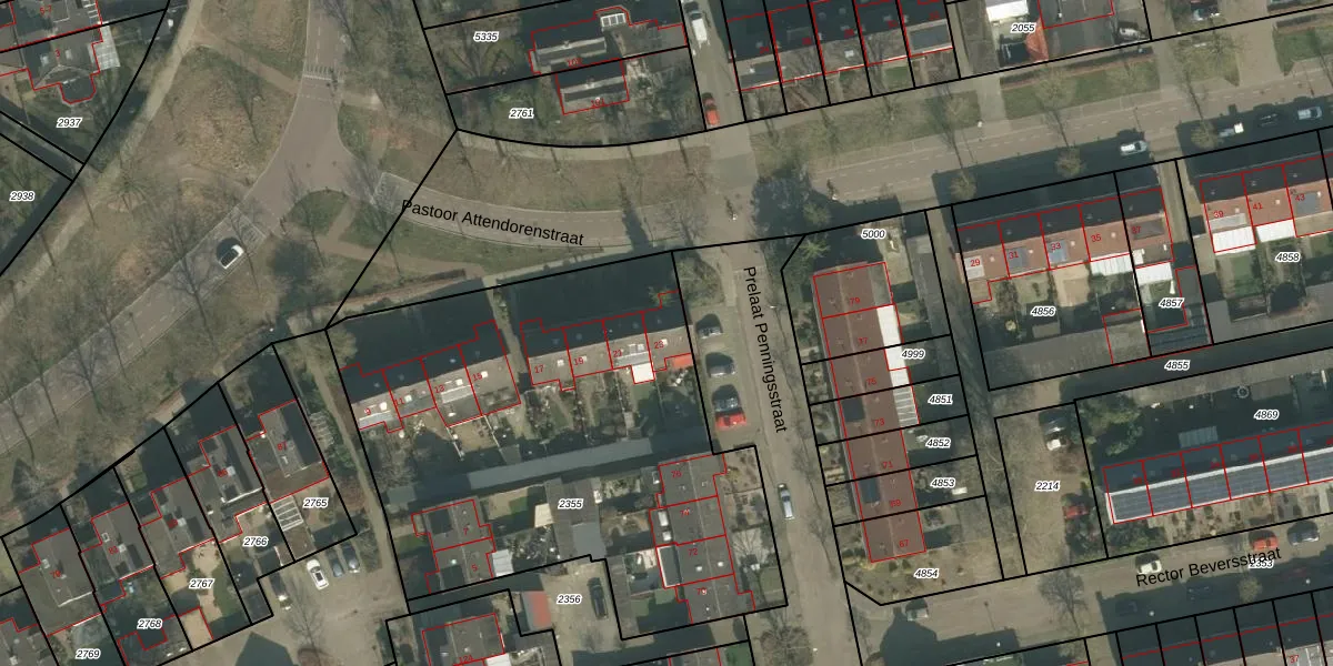 Het perceel waarop Pastoor Attendorenstraat 23 staat heeft een oppervlakte van 2592 m². Dit is een zeer groot perceel. De perceeloppervlakte wordt geregistreerd door het Kadaster. Gedetailleerde informatie over de maten van dit perceel kunt u vinden in het rapport Kadastrale kaart met maatvoering van Pastoor Attendorenstraat 23.