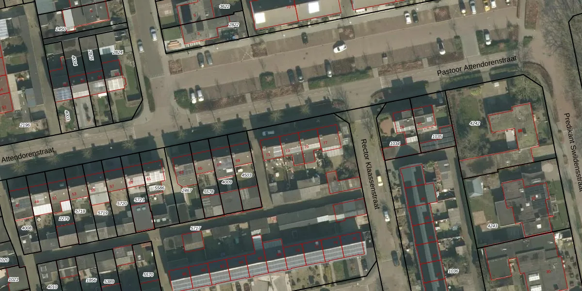 Het perceel waarop Pastoor Attendorenstraat 73 staat heeft een oppervlakte van 3927 m². Dit is een zeer groot perceel. De perceeloppervlakte wordt geregistreerd door het Kadaster. Gedetailleerde informatie over de maten van dit perceel kunt u vinden in het rapport Kadastrale kaart met maatvoering van Pastoor Attendorenstraat 73.