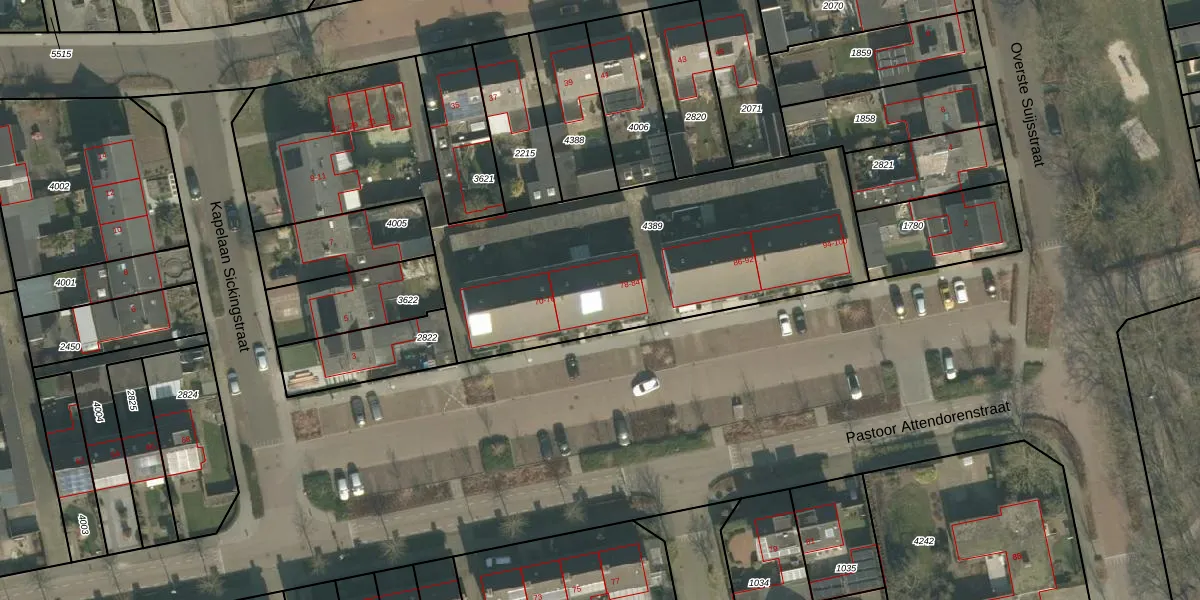 Het perceel waarop Pastoor Attendorenstraat 82 staat heeft een oppervlakte van 2361 m². Dit is een zeer groot perceel. De perceeloppervlakte wordt geregistreerd door het Kadaster. Gedetailleerde informatie over de maten van dit perceel kunt u vinden in het rapport Kadastrale kaart met maatvoering van Pastoor Attendorenstraat 82.