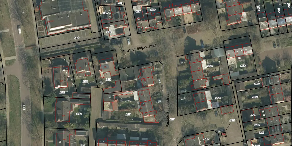 Pastoor Strijbosstraat 30 is gelegen op kadastraal perceel GMT00M2415. Deze kadastrale aanduiding is uniek en wordt gebruikt door het Kadaster om eigendomsrechten en andere zakelijke rechten vast te leggen. Het perceel maakt onderdeel uit van de kadastrale gemeente Gemert.