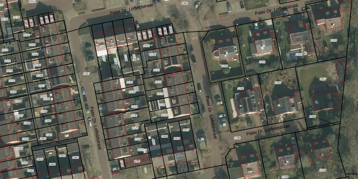 Pater Dr. Loffeldstraat 71 is gelegen op kadastraal perceel GMT00M2123. Deze kadastrale aanduiding is uniek en wordt gebruikt door het Kadaster om eigendomsrechten en andere zakelijke rechten vast te leggen. Het perceel maakt onderdeel uit van de kadastrale gemeente Gemert.