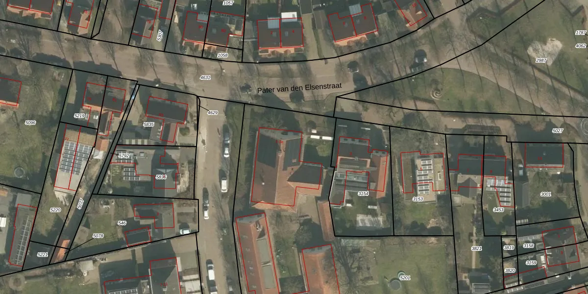 Het perceel waarop Pater van den Elsenstraat 1-a staat heeft een oppervlakte van 3720 m². Dit is een zeer groot perceel. De perceeloppervlakte wordt geregistreerd door het Kadaster. Gedetailleerde informatie over de maten van dit perceel kunt u vinden in het rapport Kadastrale kaart met maatvoering van Pater van den Elsenstraat 1-a.