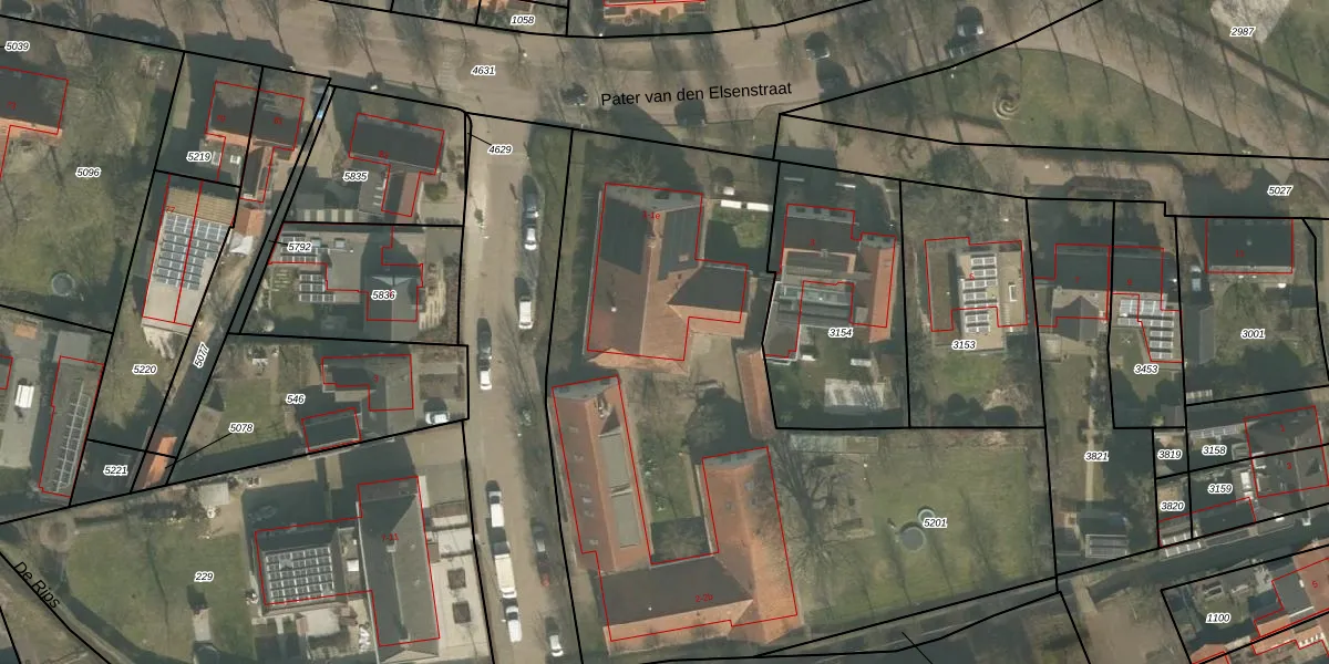 Het perceel waarop Pater van den Elsenstraat 1-c staat heeft een oppervlakte van 3720 m². Dit is een zeer groot perceel. De perceeloppervlakte wordt geregistreerd door het Kadaster. Gedetailleerde informatie over de maten van dit perceel kunt u vinden in het rapport Kadastrale kaart met maatvoering van Pater van den Elsenstraat 1-c.