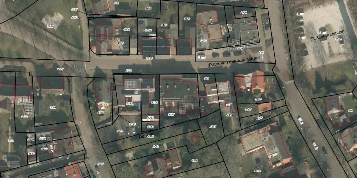 Het perceel waarop Pater van den Elsenstraat 37 staat heeft een oppervlakte van 610 m². Dit is een groot perceel. De perceeloppervlakte wordt geregistreerd door het Kadaster. Gedetailleerde informatie over de maten van dit perceel kunt u vinden in het rapport Kadastrale kaart met maatvoering van Pater van den Elsenstraat 37.