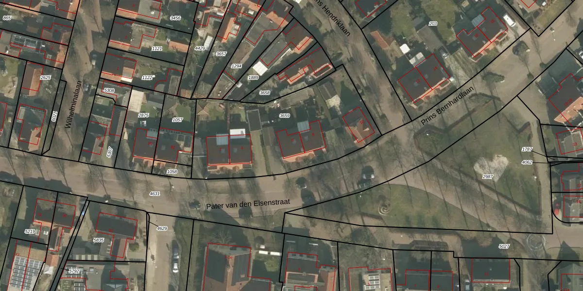 Het perceel waarop Pater van den Elsenstraat 6 staat heeft een oppervlakte van 1597 m². Dit is een zeer groot perceel. De perceeloppervlakte wordt geregistreerd door het Kadaster. Gedetailleerde informatie over de maten van dit perceel kunt u vinden in het rapport Kadastrale kaart met maatvoering van Pater van den Elsenstraat 6.