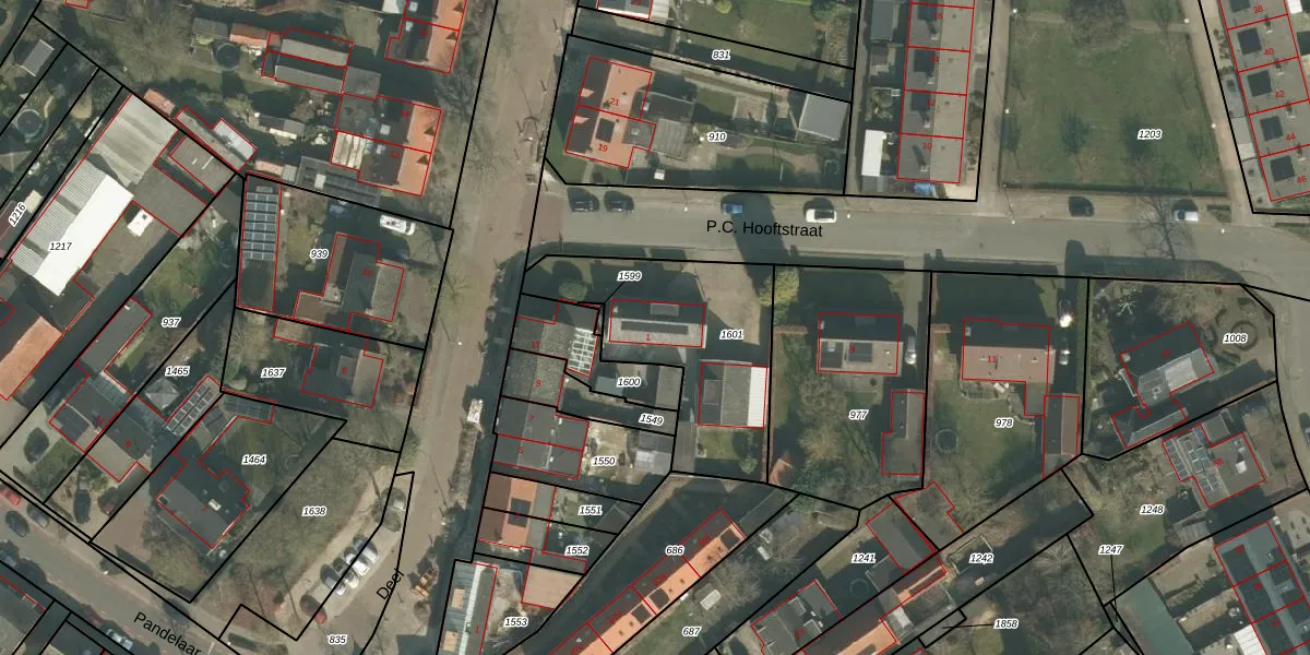 P.C. Hooftstraat 1 is gelegen op kadastraal perceel GMT00N1601. Deze kadastrale aanduiding is uniek en wordt gebruikt door het Kadaster om eigendomsrechten en andere zakelijke rechten vast te leggen. Het perceel maakt onderdeel uit van de kadastrale gemeente Gemert.