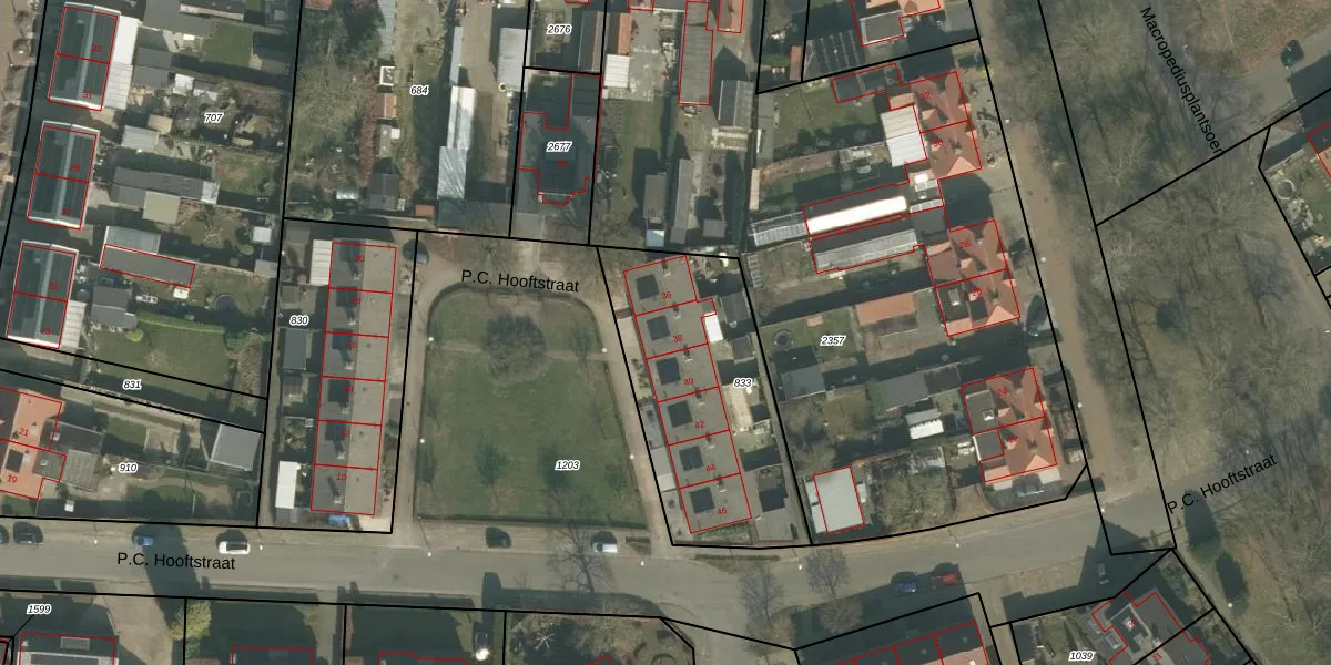 Het perceel waarop P.C. Hooftstraat 38 staat heeft een oppervlakte van 930 m². Dit is een groot perceel. De perceeloppervlakte wordt geregistreerd door het Kadaster. Gedetailleerde informatie over de maten van dit perceel kunt u vinden in het rapport Kadastrale kaart met maatvoering van P.C. Hooftstraat 38.