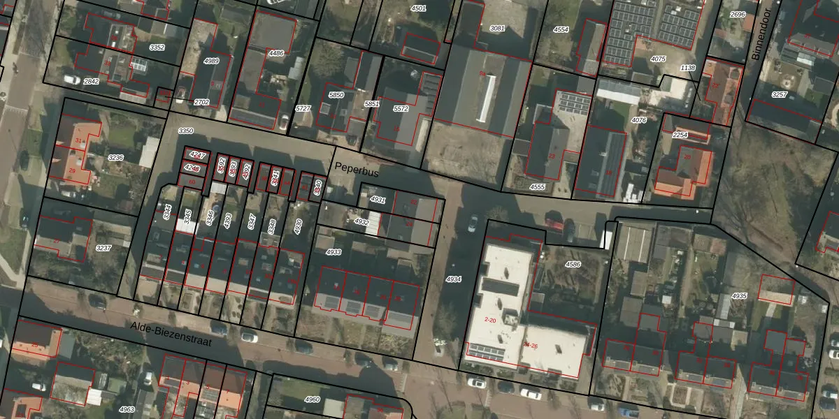 Gebruik de zoekbalk of klik op een perceel voor informatie over de adressen binnen dit perceel.
