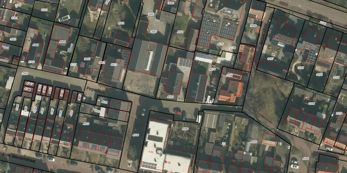 Het perceel waarop Peperbus 23 staat heeft een oppervlakte van 498 m². Dit is een groot perceel. De perceeloppervlakte wordt geregistreerd door het Kadaster. Gedetailleerde informatie over de maten van dit perceel kunt u vinden in het rapport Kadastrale kaart met maatvoering van Peperbus 23.