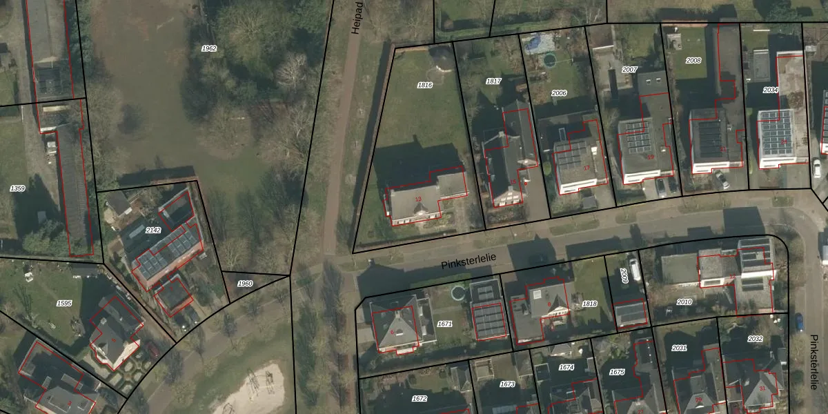 Het perceel waarop Pinksterlelie 13 staat heeft een oppervlakte van 1089 m². Dit is een zeer groot perceel. De perceeloppervlakte wordt geregistreerd door het Kadaster. Gedetailleerde informatie over de maten van dit perceel kunt u vinden in het rapport Kadastrale kaart met maatvoering van Pinksterlelie 13.