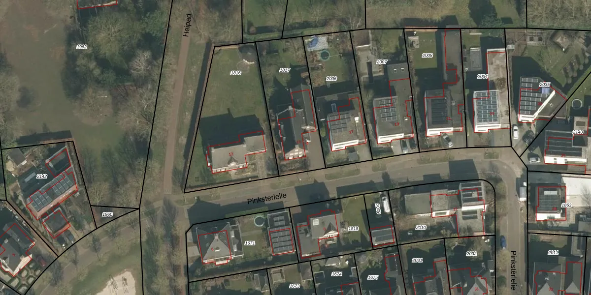 Gebruik de zoekbalk of klik op een perceel voor informatie over de adressen binnen dit perceel.