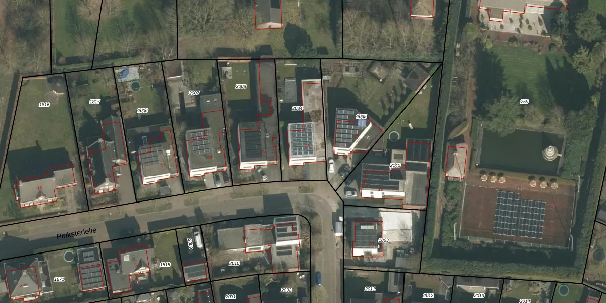 Het perceel waarop Pinksterlelie 23 staat heeft een oppervlakte van 605 m². Dit is een groot perceel. De perceeloppervlakte wordt geregistreerd door het Kadaster. Gedetailleerde informatie over de maten van dit perceel kunt u vinden in het rapport Kadastrale kaart met maatvoering van Pinksterlelie 23.