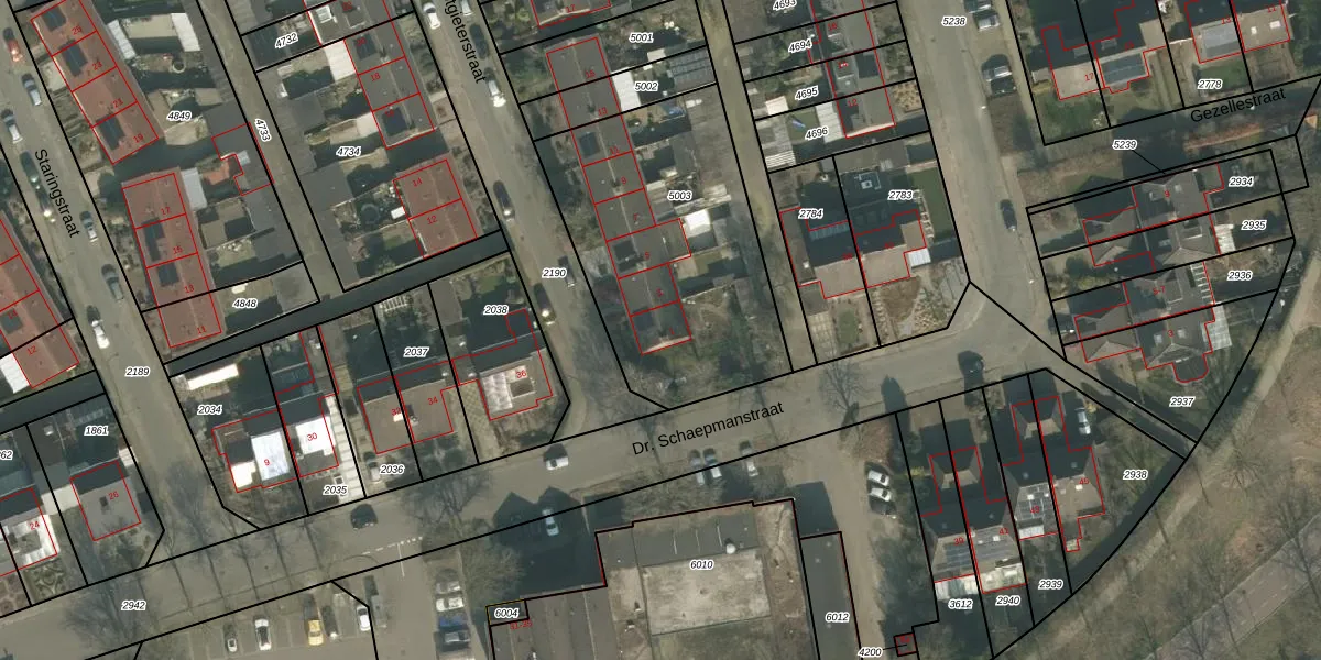 Potgieterstraat 1 is gelegen op kadastraal perceel GMT00M5003. Deze kadastrale aanduiding is uniek en wordt gebruikt door het Kadaster om eigendomsrechten en andere zakelijke rechten vast te leggen. Het perceel maakt onderdeel uit van de kadastrale gemeente Gemert.