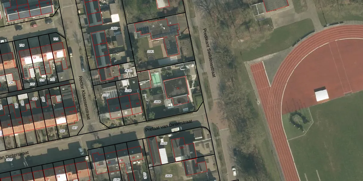 Gebruik de zoekbalk of klik op een perceel voor informatie over de adressen binnen dit perceel.