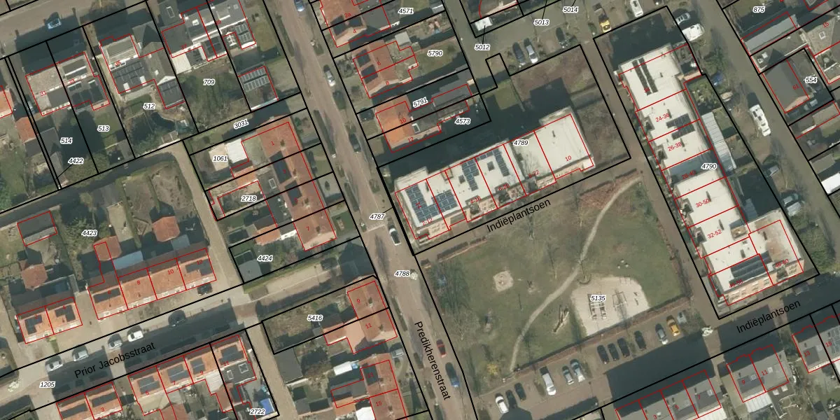 Het perceel waarop Predikherenstraat 14 staat heeft een oppervlakte van 1457 m². Dit is een zeer groot perceel. De perceeloppervlakte wordt geregistreerd door het Kadaster. Gedetailleerde informatie over de maten van dit perceel kunt u vinden in het rapport Kadastrale kaart met maatvoering van Predikherenstraat 14.