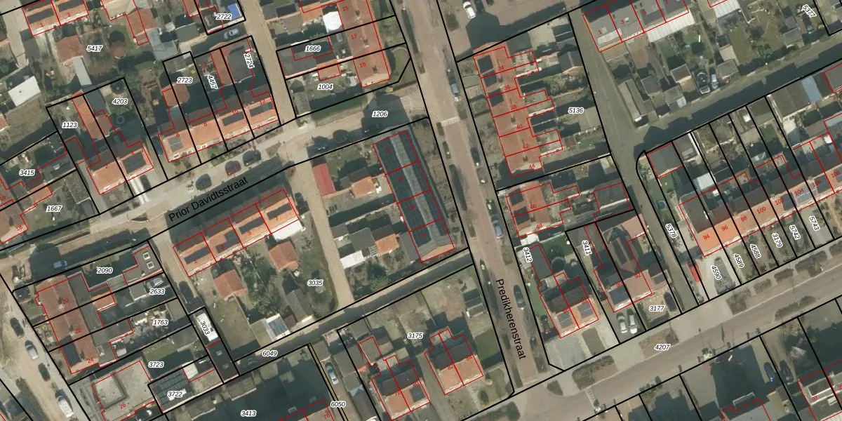 Het perceel waarop Predikherenstraat 25 staat heeft een oppervlakte van 2378 m². Dit is een zeer groot perceel. De perceeloppervlakte wordt geregistreerd door het Kadaster. Gedetailleerde informatie over de maten van dit perceel kunt u vinden in het rapport Kadastrale kaart met maatvoering van Predikherenstraat 25.
