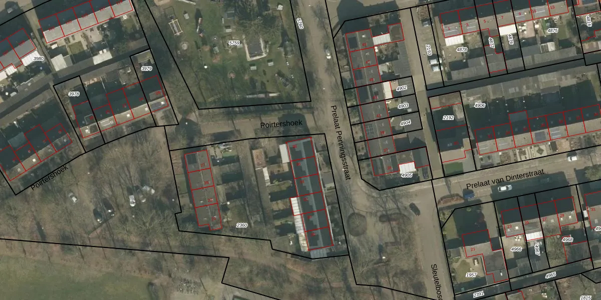 Het perceel waarop Prelaat Penningsstraat 38 staat heeft een oppervlakte van 1865 m². Dit is een zeer groot perceel. De perceeloppervlakte wordt geregistreerd door het Kadaster. Gedetailleerde informatie over de maten van dit perceel kunt u vinden in het rapport Kadastrale kaart met maatvoering van Prelaat Penningsstraat 38.