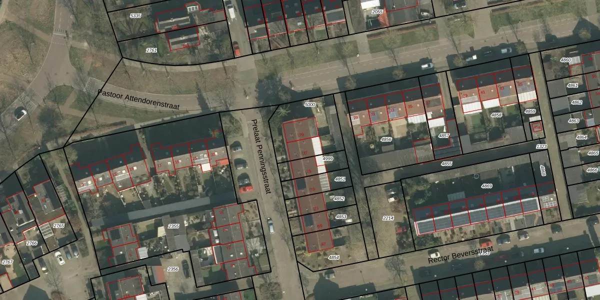 Het perceel waarop Prelaat Penningsstraat 77 staat heeft een oppervlakte van 413 m². Dit is een groot perceel. De perceeloppervlakte wordt geregistreerd door het Kadaster. Gedetailleerde informatie over de maten van dit perceel kunt u vinden in het rapport Kadastrale kaart met maatvoering van Prelaat Penningsstraat 77.