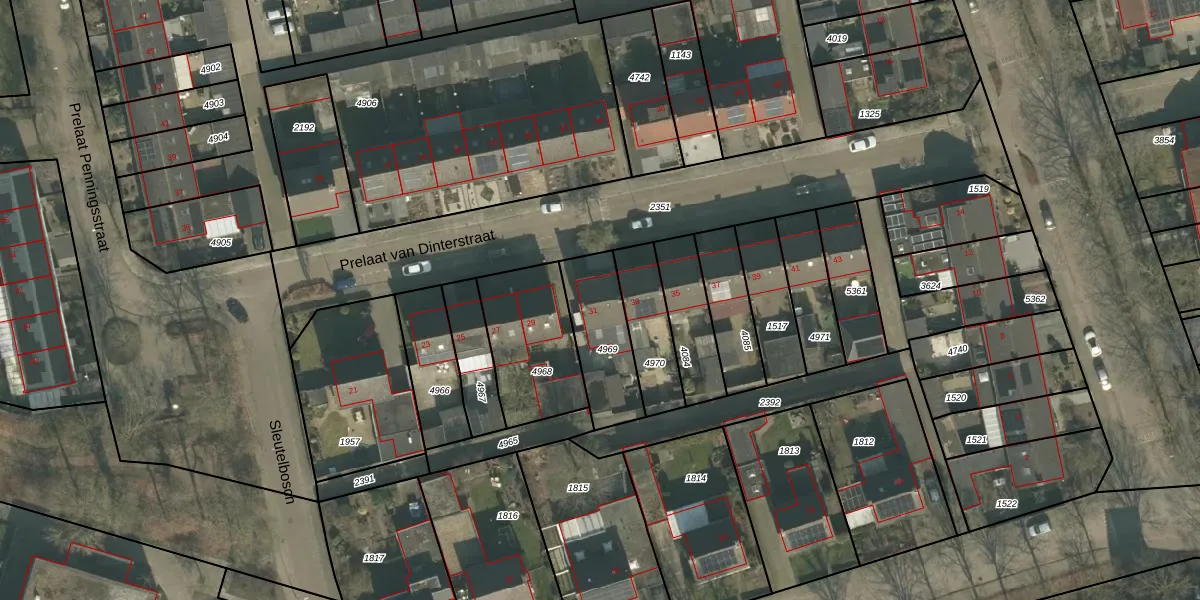 Prelaat van Dinterstraat 31 is gelegen op kadastraal perceel GMT00M4969. Deze kadastrale aanduiding is uniek en wordt gebruikt door het Kadaster om eigendomsrechten en andere zakelijke rechten vast te leggen. Het perceel maakt onderdeel uit van de kadastrale gemeente Gemert.