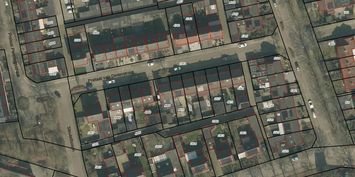Het perceel waarop Prelaat van Dinterstraat 33 staat heeft een oppervlakte van 195 m². Dit is een middelgroot perceel. De perceeloppervlakte wordt geregistreerd door het Kadaster. Gedetailleerde informatie over de maten van dit perceel kunt u vinden in het rapport Kadastrale kaart met maatvoering van Prelaat van Dinterstraat 33.