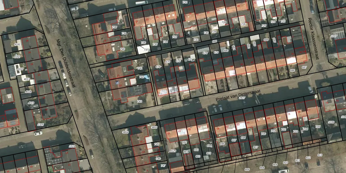 Het perceel waarop Prelaat van Dinterstraat 54 staat heeft een oppervlakte van 172 m². Dit is een middelgroot perceel. De perceeloppervlakte wordt geregistreerd door het Kadaster. Gedetailleerde informatie over de maten van dit perceel kunt u vinden in het rapport Kadastrale kaart met maatvoering van Prelaat van Dinterstraat 54.