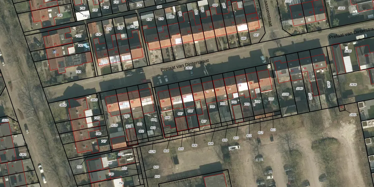 Het perceel waarop Prelaat van Dinterstraat 63 staat heeft een oppervlakte van 153 m². Dit is een middelgroot perceel. De perceeloppervlakte wordt geregistreerd door het Kadaster. Gedetailleerde informatie over de maten van dit perceel kunt u vinden in het rapport Kadastrale kaart met maatvoering van Prelaat van Dinterstraat 63.