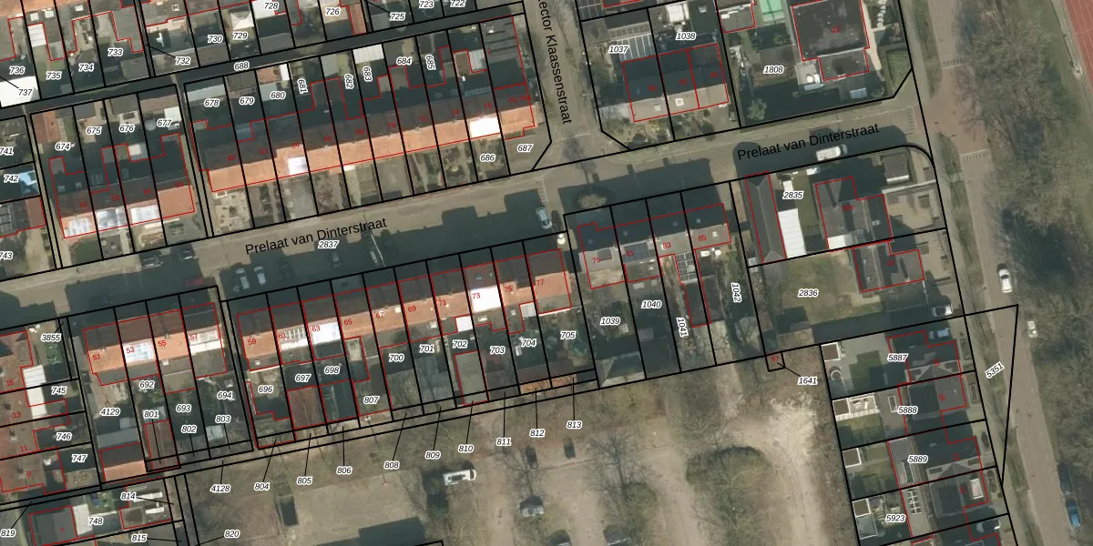 Het perceel waarop Prelaat van Dinterstraat 77 staat heeft een oppervlakte van 215 m². Dit is een middelgroot perceel. De perceeloppervlakte wordt geregistreerd door het Kadaster. Gedetailleerde informatie over de maten van dit perceel kunt u vinden in het rapport Kadastrale kaart met maatvoering van Prelaat van Dinterstraat 77.