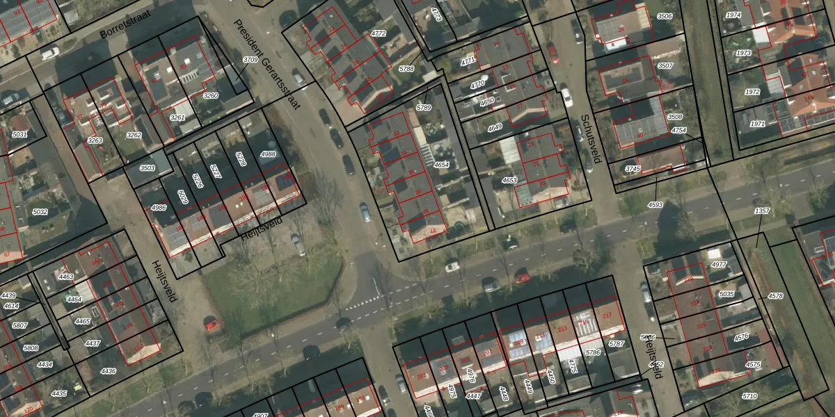 Het perceel waarop President Gerartsstraat 40 staat heeft een oppervlakte van 839 m². Dit is een groot perceel. De perceeloppervlakte wordt geregistreerd door het Kadaster. Gedetailleerde informatie over de maten van dit perceel kunt u vinden in het rapport Kadastrale kaart met maatvoering van President Gerartsstraat 40.