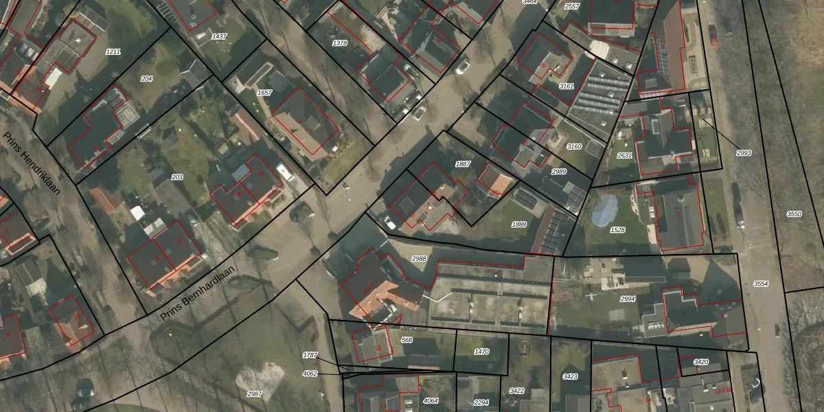 Het perceel waarop Prins Bernhardlaan 21 staat heeft een oppervlakte van 584 m². Dit is een groot perceel. De perceeloppervlakte wordt geregistreerd door het Kadaster. Gedetailleerde informatie over de maten van dit perceel kunt u vinden in het rapport Kadastrale kaart met maatvoering van Prins Bernhardlaan 21.