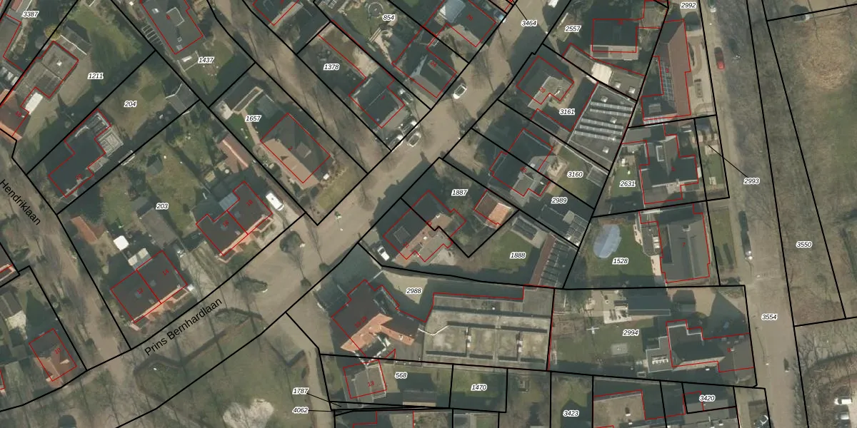 Het perceel waarop Prins Bernhardlaan 23 staat heeft een oppervlakte van 312 m². Dit is een groot perceel. De perceeloppervlakte wordt geregistreerd door het Kadaster. Gedetailleerde informatie over de maten van dit perceel kunt u vinden in het rapport Kadastrale kaart met maatvoering van Prins Bernhardlaan 23.