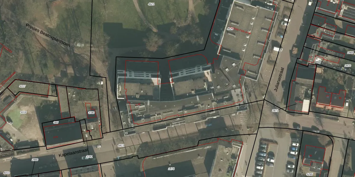 Het perceel waarop Prinses Beatrixplantsoen 30 staat heeft een oppervlakte van 8605 m². Dit is een zeer groot perceel. De perceeloppervlakte wordt geregistreerd door het Kadaster. Gedetailleerde informatie over de maten van dit perceel kunt u vinden in het rapport Kadastrale kaart met maatvoering van Prinses Beatrixplantsoen 30.
