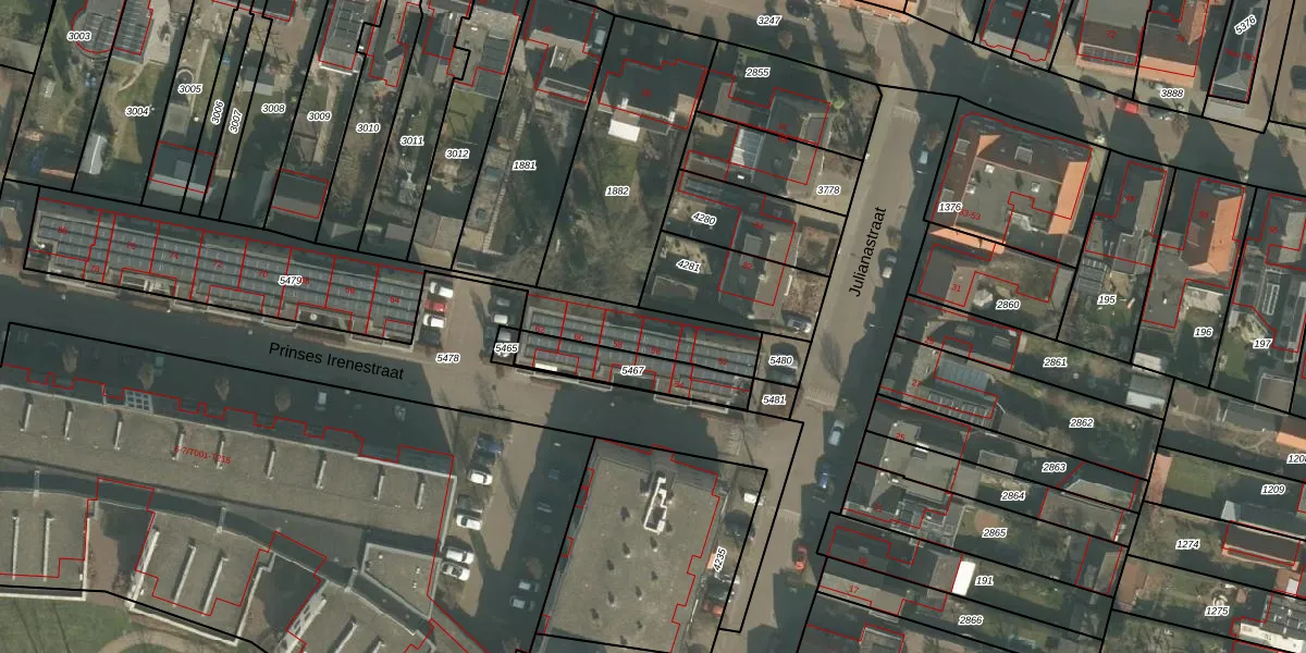 Prinses Irenestraat 56 is gelegen op kadastraal perceel GMT00M5479. Deze kadastrale aanduiding is uniek en wordt gebruikt door het Kadaster om eigendomsrechten en andere zakelijke rechten vast te leggen. Het perceel maakt onderdeel uit van de kadastrale gemeente Gemert.