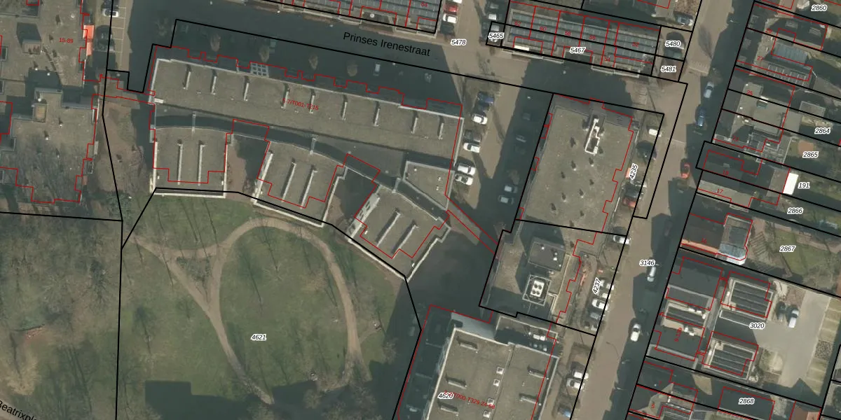 Het perceel waarop Prinses Irenestraat 7-T201 staat heeft een oppervlakte van 8605 m². Dit is een zeer groot perceel. De perceeloppervlakte wordt geregistreerd door het Kadaster. Gedetailleerde informatie over de maten van dit perceel kunt u vinden in het rapport Kadastrale kaart met maatvoering van Prinses Irenestraat 7-T201.