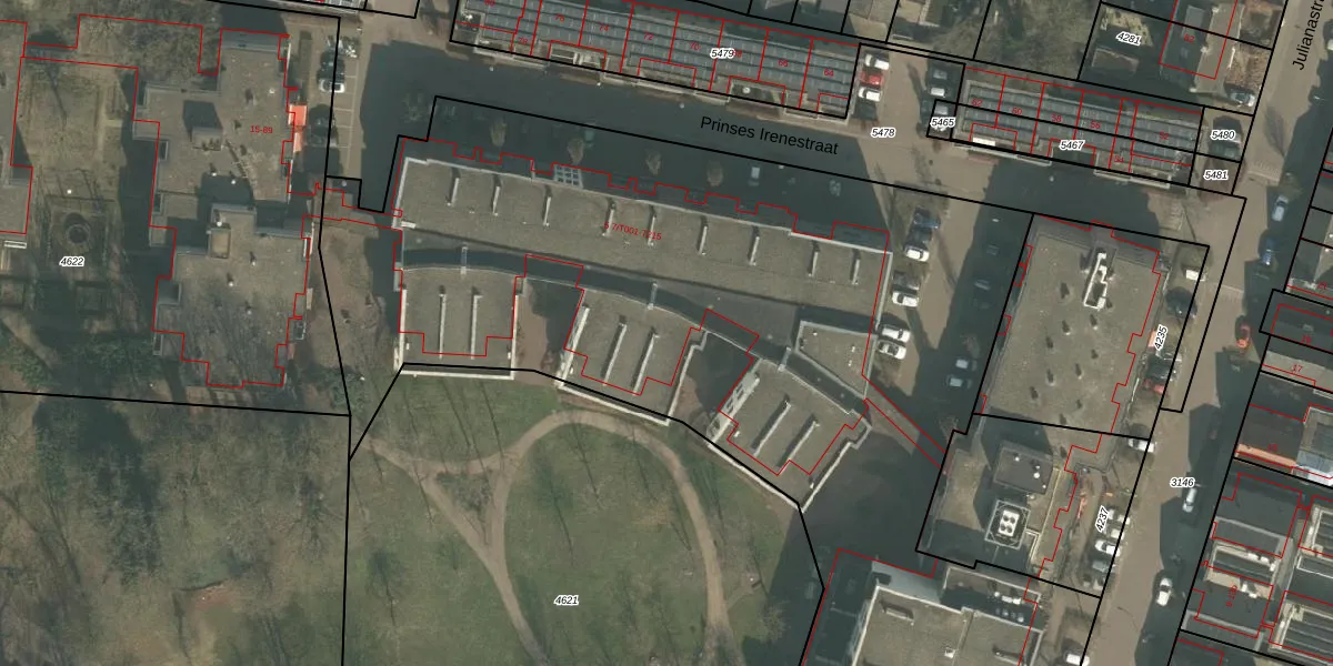 Prinses Irenestraat 7-T203 is gelegen op kadastraal perceel GMT00M4620. Deze kadastrale aanduiding is uniek en wordt gebruikt door het Kadaster om eigendomsrechten en andere zakelijke rechten vast te leggen. Het perceel maakt onderdeel uit van de kadastrale gemeente Gemert.