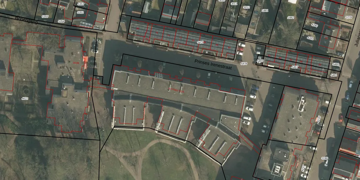 Prinses Irenestraat 7-T211 is gelegen op kadastraal perceel GMT00M4620. Deze kadastrale aanduiding is uniek en wordt gebruikt door het Kadaster om eigendomsrechten en andere zakelijke rechten vast te leggen. Het perceel maakt onderdeel uit van de kadastrale gemeente Gemert.