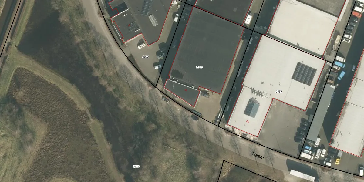Het perceel waarop Raam 18 staat heeft een oppervlakte van 2132 m². Dit is een zeer groot perceel. De perceeloppervlakte wordt geregistreerd door het Kadaster. Gedetailleerde informatie over de maten van dit perceel kunt u vinden in het rapport Kadastrale kaart met maatvoering van Raam 18.