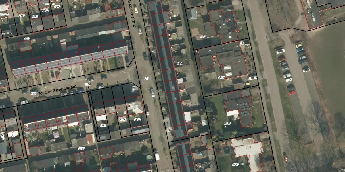 Het perceel waarop Rector Klaassenstraat 33 staat heeft een oppervlakte van 2139 m². Dit is een zeer groot perceel. De perceeloppervlakte wordt geregistreerd door het Kadaster. Gedetailleerde informatie over de maten van dit perceel kunt u vinden in het rapport Kadastrale kaart met maatvoering van Rector Klaassenstraat 33.