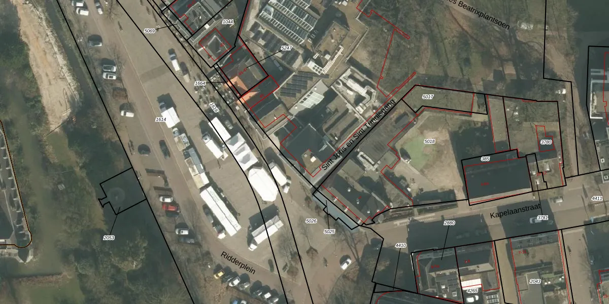 Ridderplein 1 is gelegen op kadastraal perceel GMT00M5339. Deze kadastrale aanduiding is uniek en wordt gebruikt door het Kadaster om eigendomsrechten en andere zakelijke rechten vast te leggen. Het perceel maakt onderdeel uit van de kadastrale gemeente Gemert.