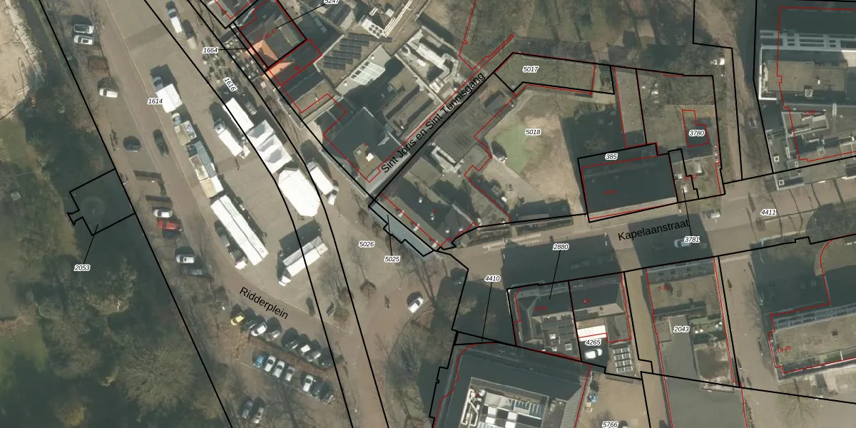 Ridderplein 3 is gelegen op kadastraal perceel GMT00M5018. Deze kadastrale aanduiding is uniek en wordt gebruikt door het Kadaster om eigendomsrechten en andere zakelijke rechten vast te leggen. Het perceel maakt onderdeel uit van de kadastrale gemeente Gemert.