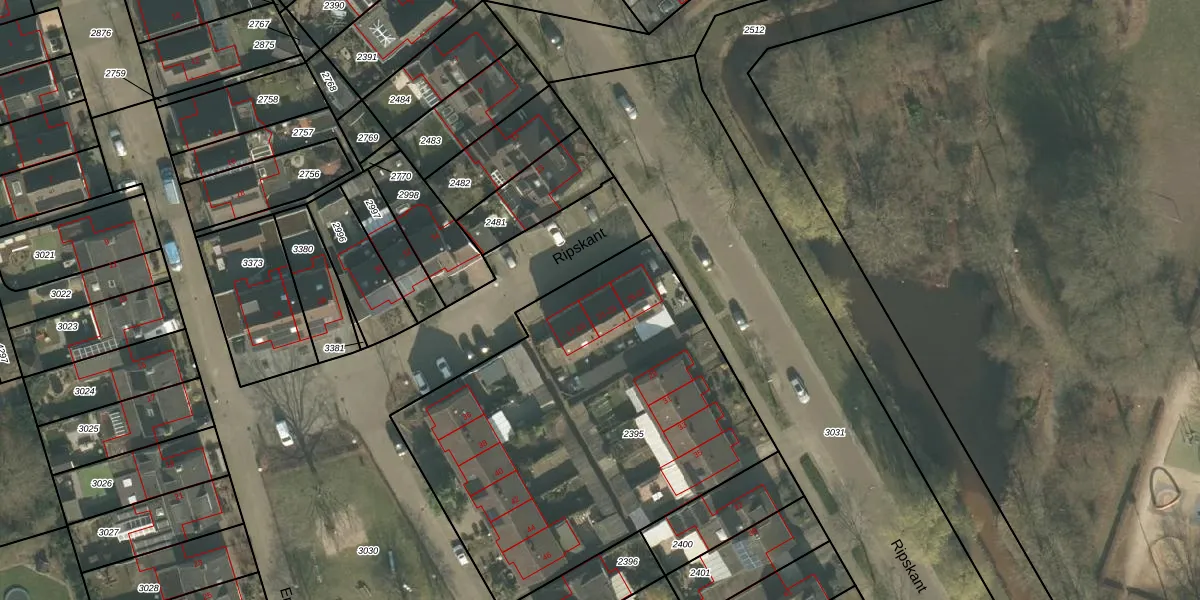 Het perceel waarop Ripskant 23 staat heeft een oppervlakte van 2109 m². Dit is een zeer groot perceel. De perceeloppervlakte wordt geregistreerd door het Kadaster. Gedetailleerde informatie over de maten van dit perceel kunt u vinden in het rapport Kadastrale kaart met maatvoering van Ripskant 23.