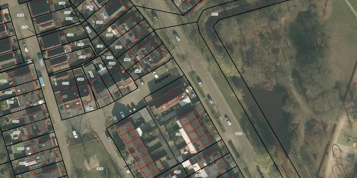 Het perceel waarop Ripskant 27 staat heeft een oppervlakte van 2109 m². Dit is een zeer groot perceel. De perceeloppervlakte wordt geregistreerd door het Kadaster. Gedetailleerde informatie over de maten van dit perceel kunt u vinden in het rapport Kadastrale kaart met maatvoering van Ripskant 27.