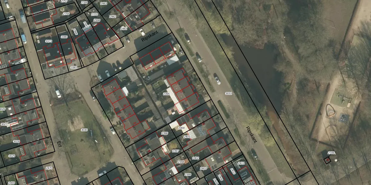Het perceel waarop Ripskant 33 staat heeft een oppervlakte van 2109 m². Dit is een zeer groot perceel. De perceeloppervlakte wordt geregistreerd door het Kadaster. Gedetailleerde informatie over de maten van dit perceel kunt u vinden in het rapport Kadastrale kaart met maatvoering van Ripskant 33.