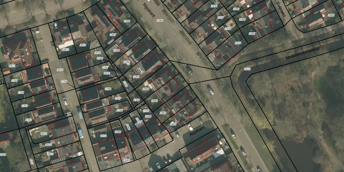 Gebruik de zoekbalk of klik op een perceel voor informatie over de adressen binnen dit perceel.