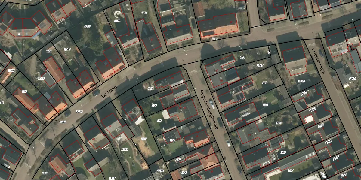 Het perceel waarop Ruijschenberghstraat 38 staat heeft een oppervlakte van 307 m². Dit is een groot perceel. De perceeloppervlakte wordt geregistreerd door het Kadaster. Gedetailleerde informatie over de maten van dit perceel kunt u vinden in het rapport Kadastrale kaart met maatvoering van Ruijschenberghstraat 38.