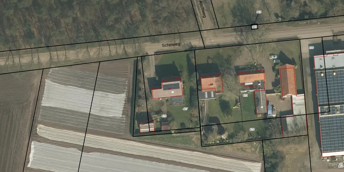 Scheiweg 69 is gelegen op kadastraal perceel GMT00O427. Deze kadastrale aanduiding is uniek en wordt gebruikt door het Kadaster om eigendomsrechten en andere zakelijke rechten vast te leggen. Het perceel maakt onderdeel uit van de kadastrale gemeente Gemert.