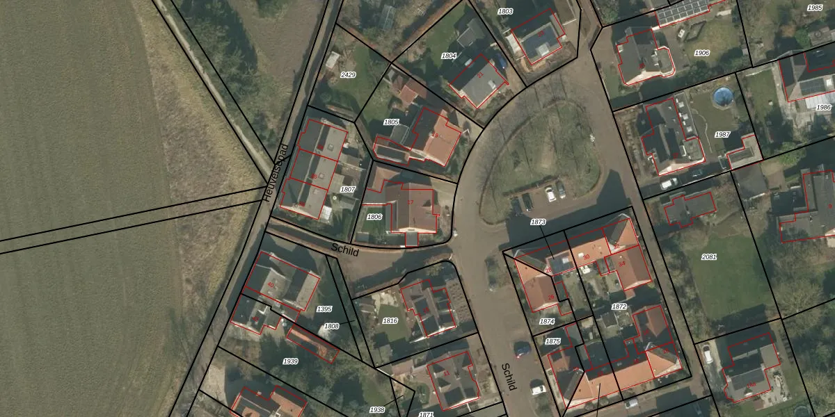 Het perceel waarop Schild 17 staat heeft een oppervlakte van 405 m². Dit is een groot perceel. De perceeloppervlakte wordt geregistreerd door het Kadaster. Gedetailleerde informatie over de maten van dit perceel kunt u vinden in het rapport Kadastrale kaart met maatvoering van Schild 17.